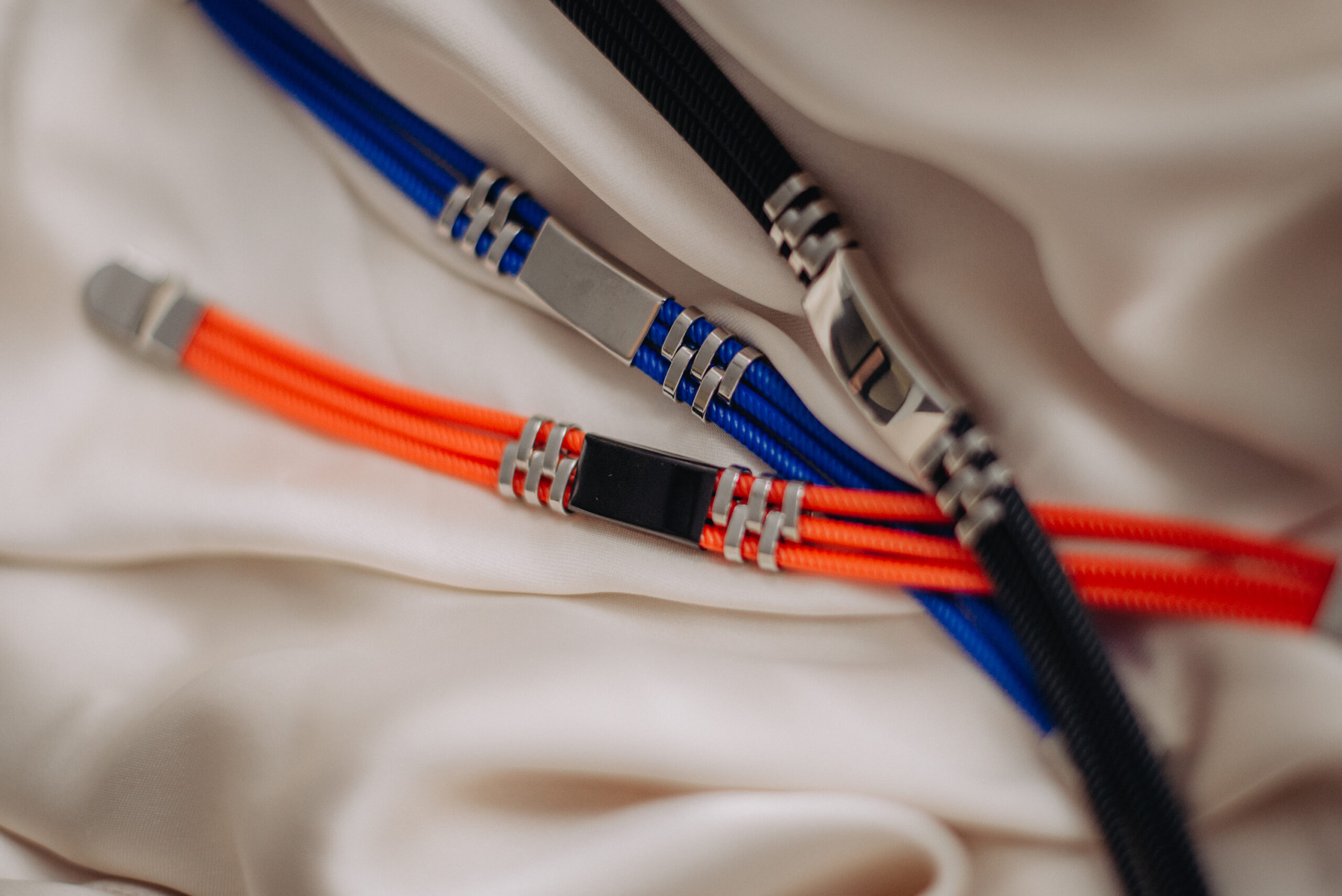Bransoletka ze stali szlachetnej oraz sznurka jubilerskiego. Personalizacja. Laserowe grawerowanie