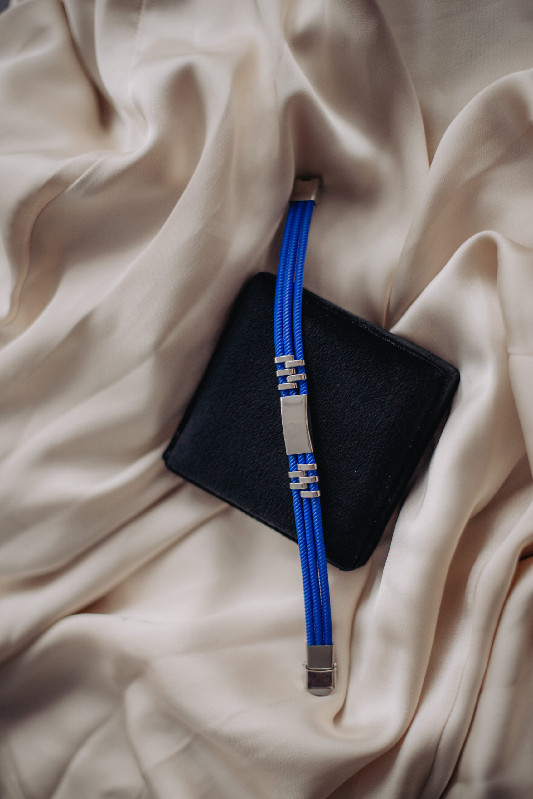 2. Niebieski sznurek + blaszka srebrna