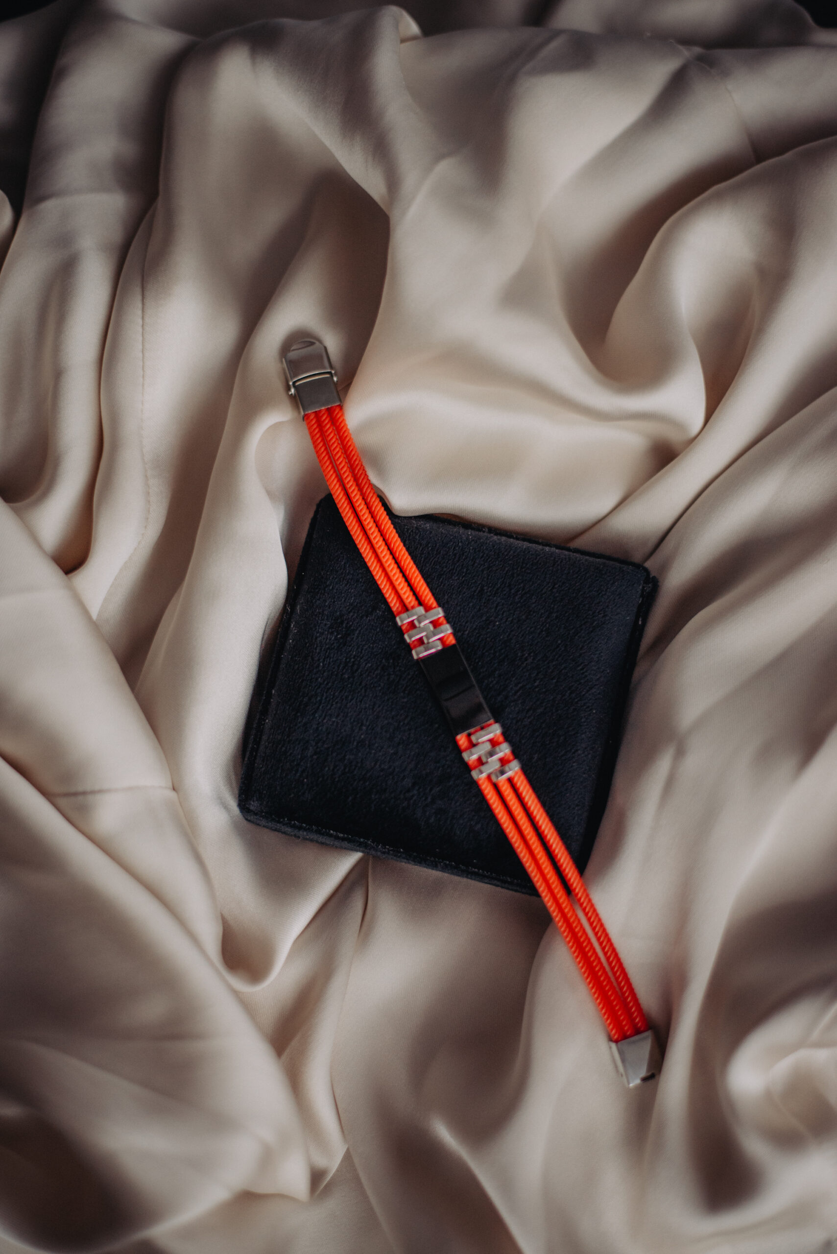 Mamy przyjemność zaoferować Państwu wspaniale prezentującą się, bransoletkę wykonaną ze stali szlachetnej oraz sznurka jubilerskiego.