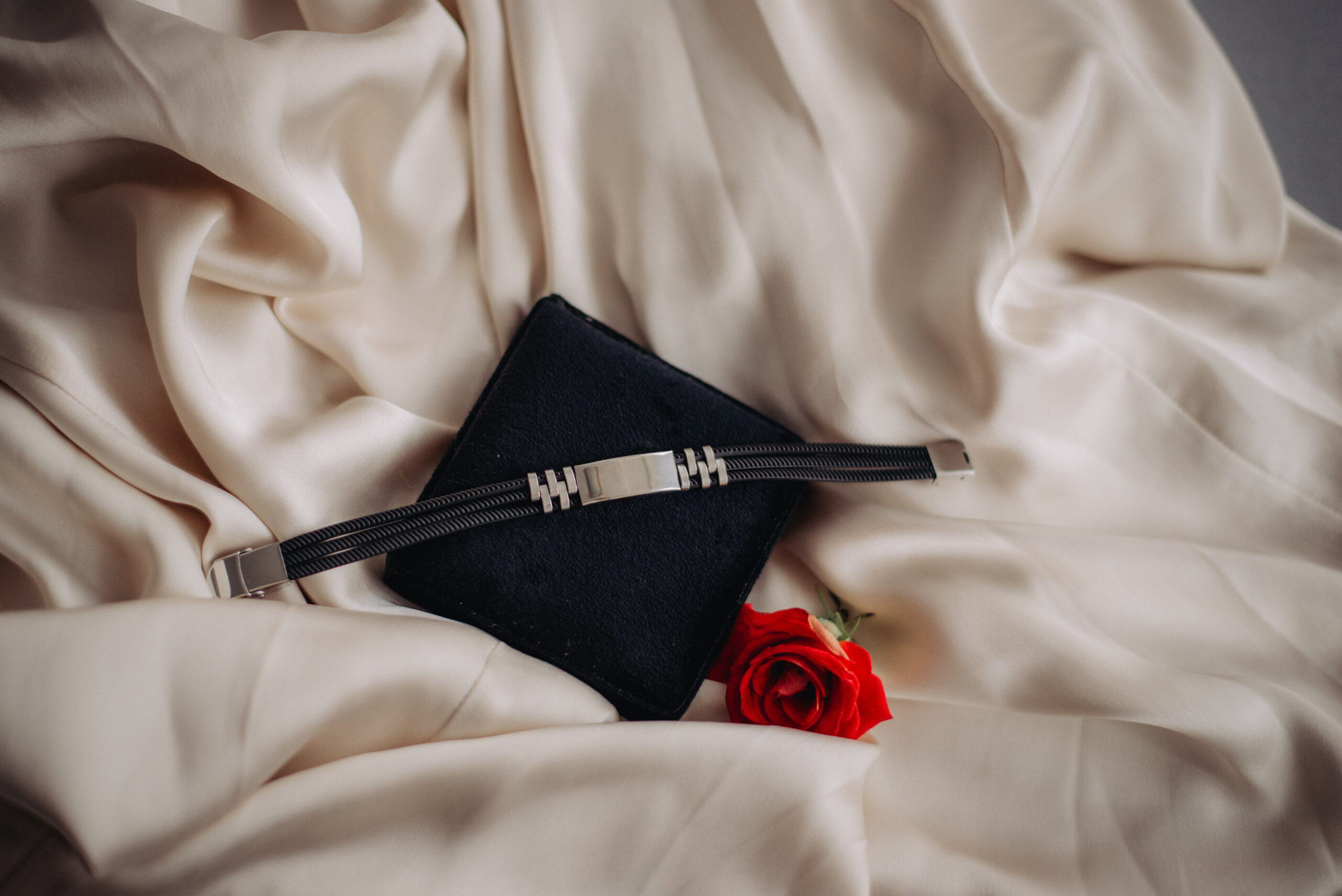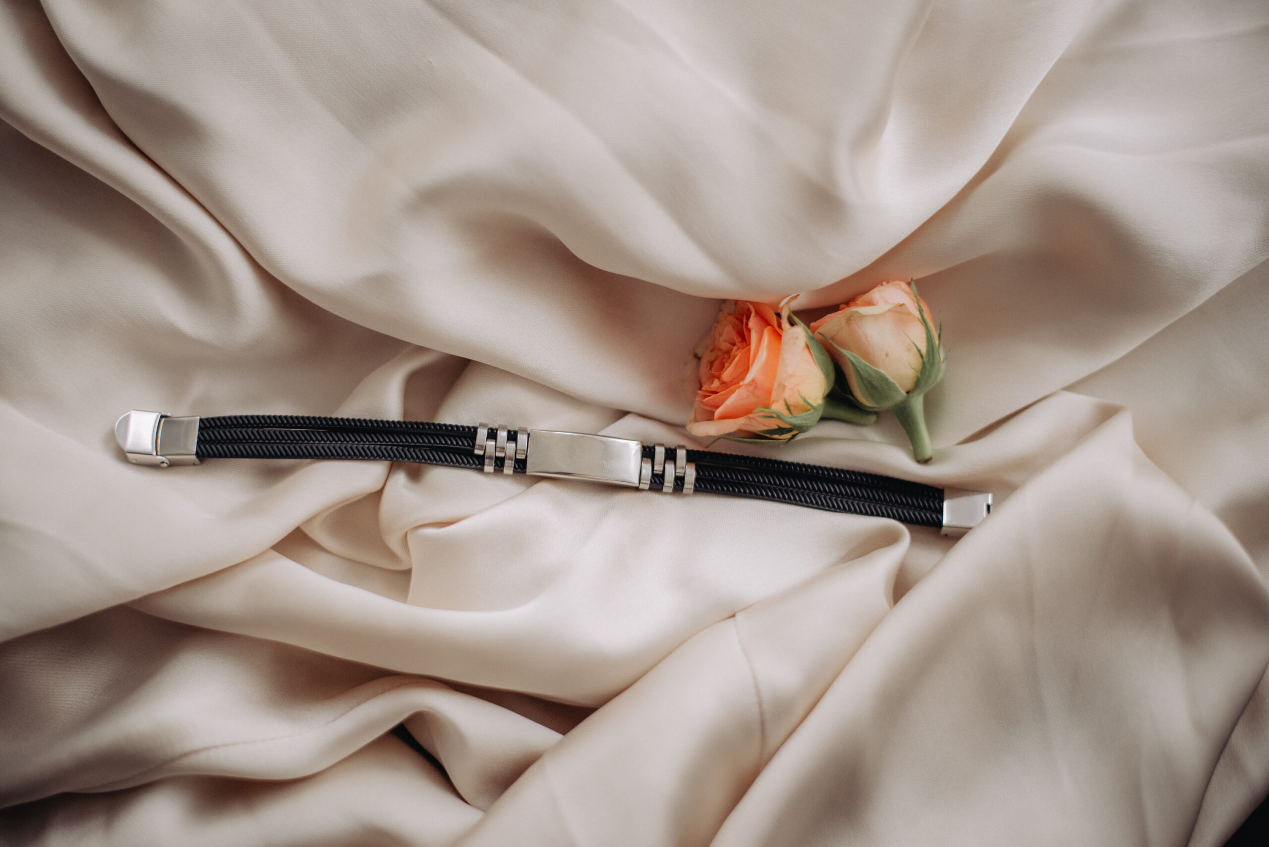 Bransoletka składa się z paska (sznurek jubilerski) oraz blaszki wykonanej ze stali antyalergicznej, przystosowanej do wykonania na niej personalizacji w postaci trwałego graweru.