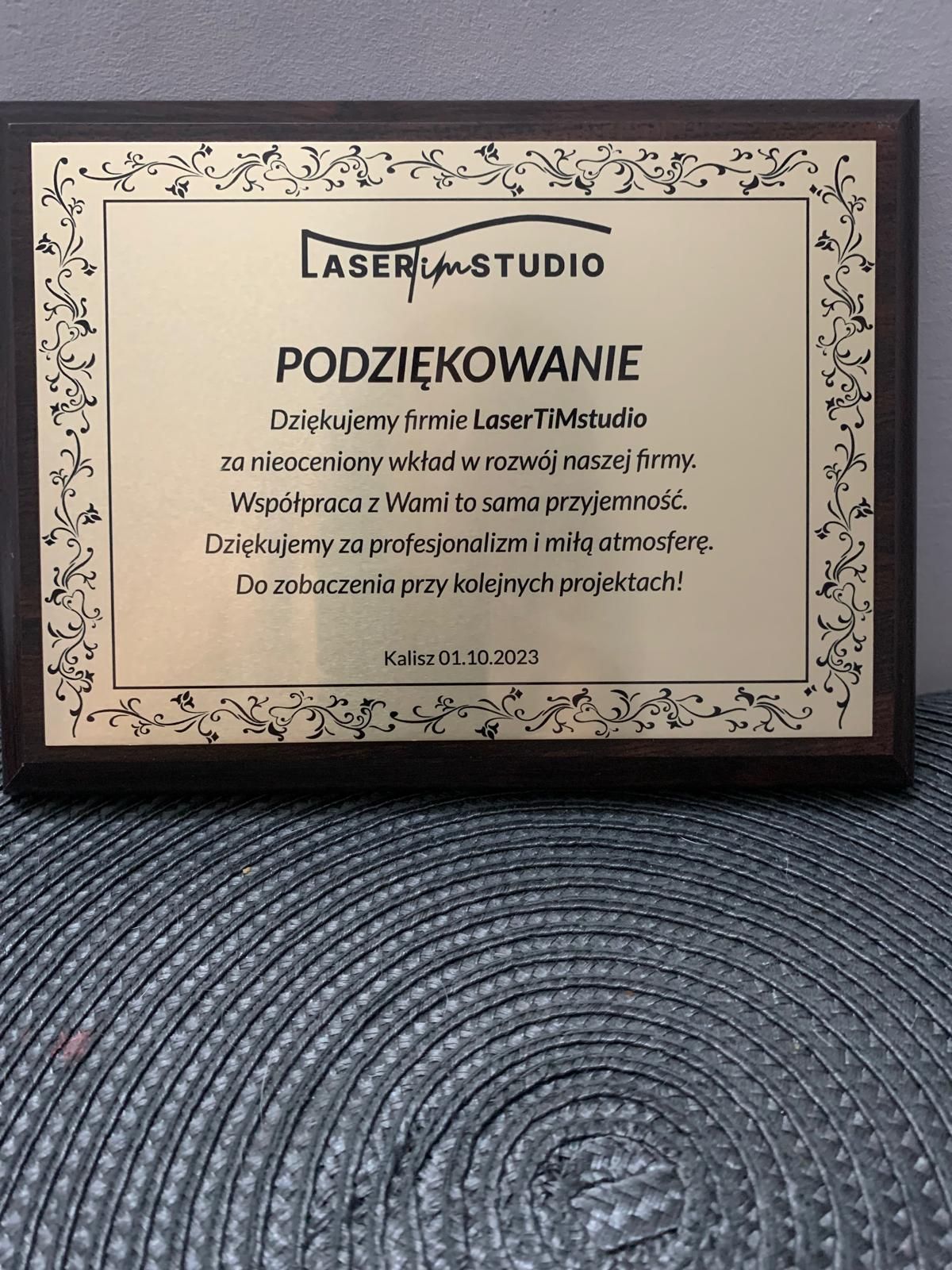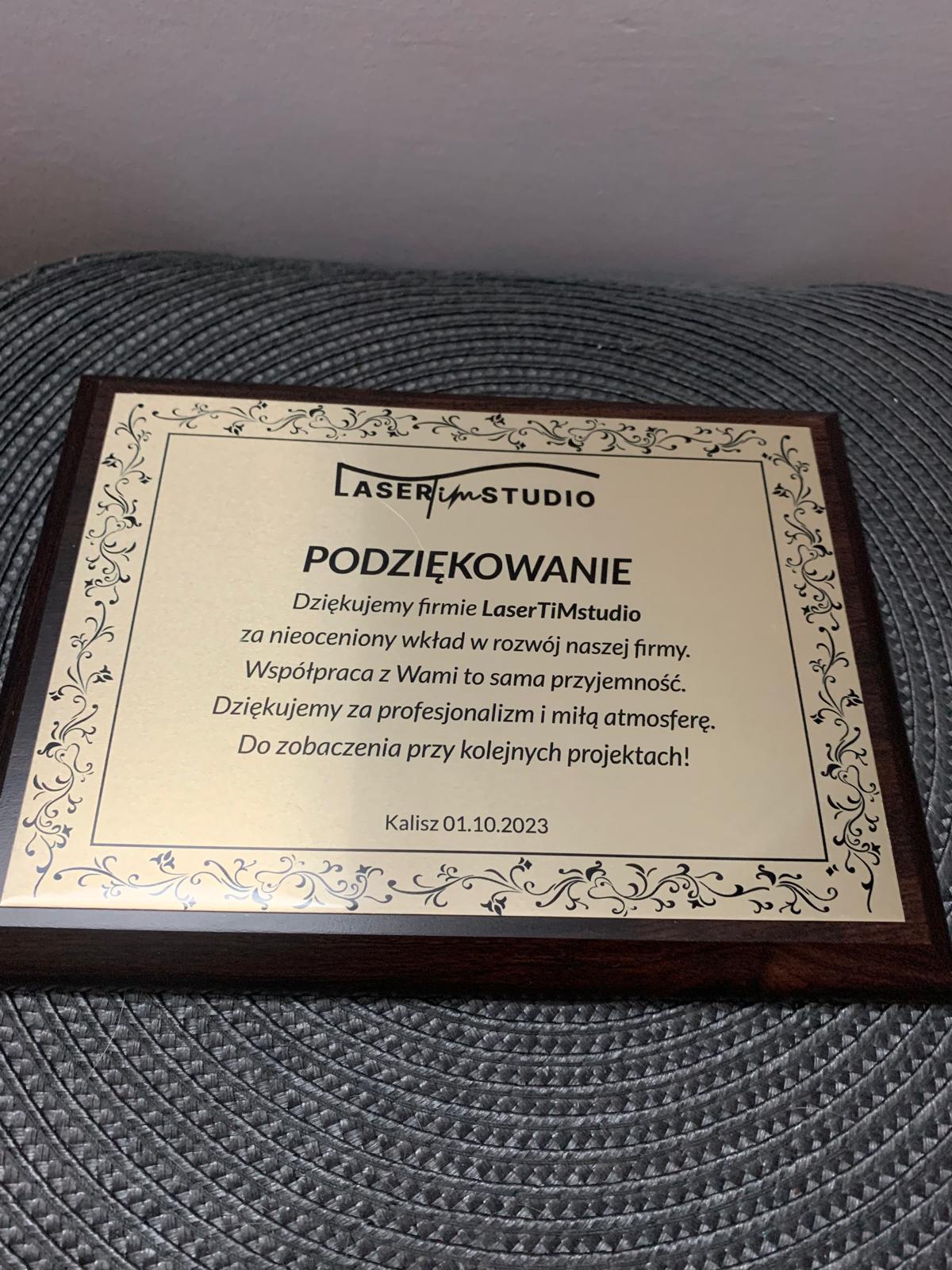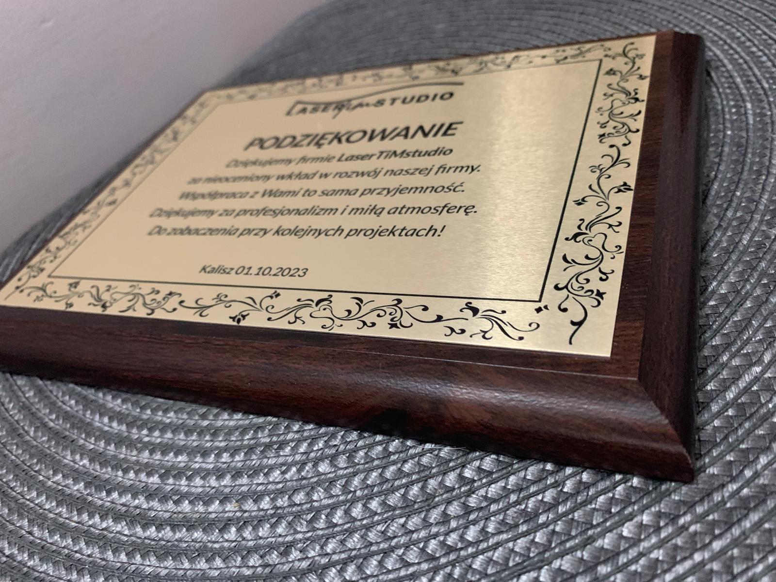 Dyplom/podziękowanie/certyfikat na podkładzie drewnianym! Personalizacja, grawerowanie laserowe! ZŁOTY!