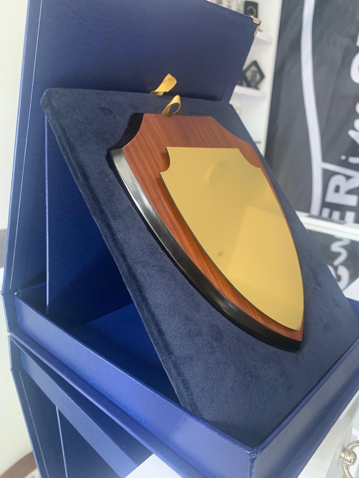 Ekskluzywny i eleganski personalizowany dyplom/podziękowanie z grawerem w kształcie tarczy w etui. Na tabliczce możesz umieścić tekst, obrazek, logo lub odznakę. Grawerowany dyplom/podziękowanie z dedykacją w stylowym etui może być także indywidualnym upominkiem dla funkcjonariusza służb mundurowych (żołnierza, policjanta czy strażaka), obronę doktoratu czy magistra, prezentem firmowym z okazji awansu czy podziękowaniem dla prawnika lub lekarza. Sam dyplom z grawerem można też zawiesić na ścianie