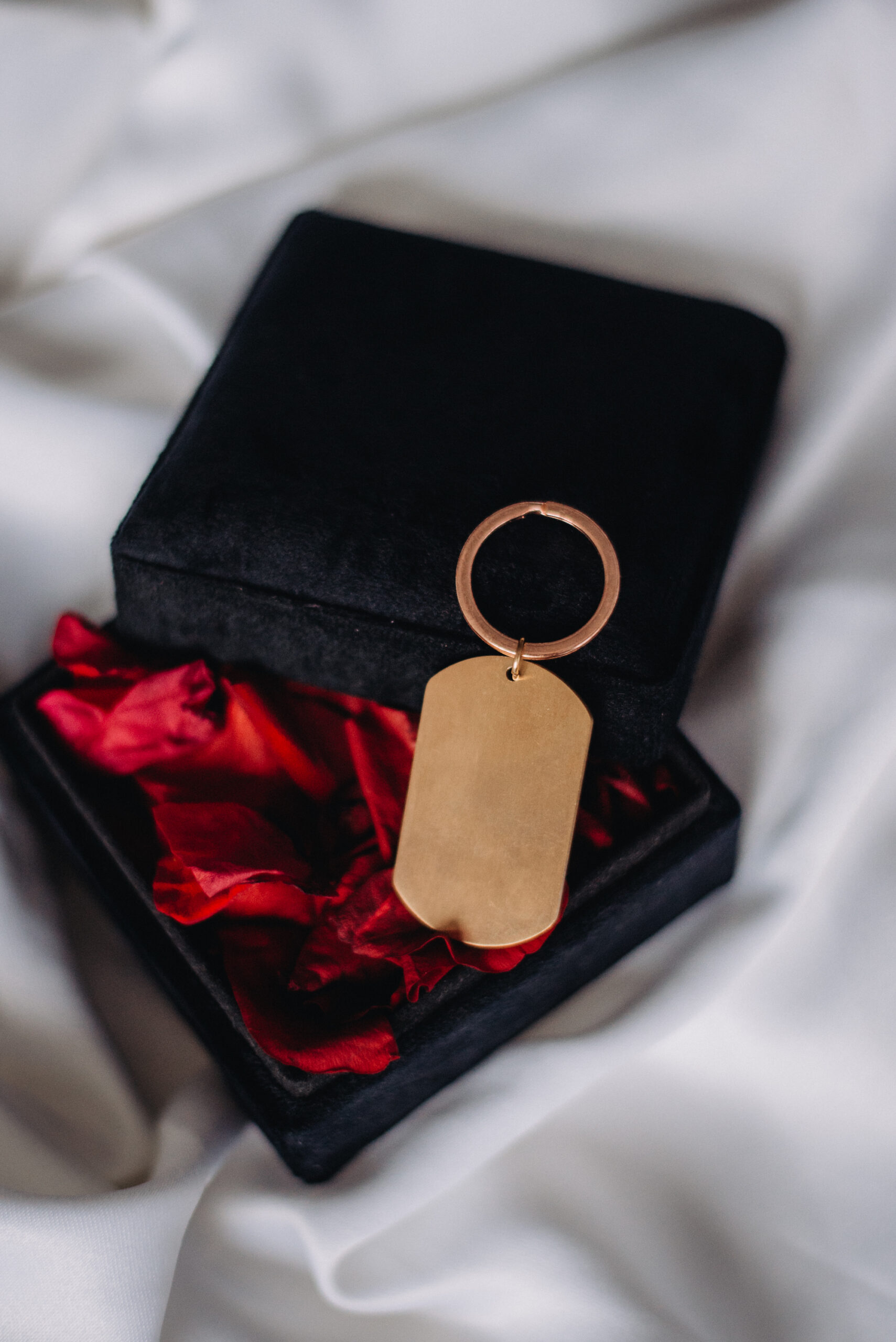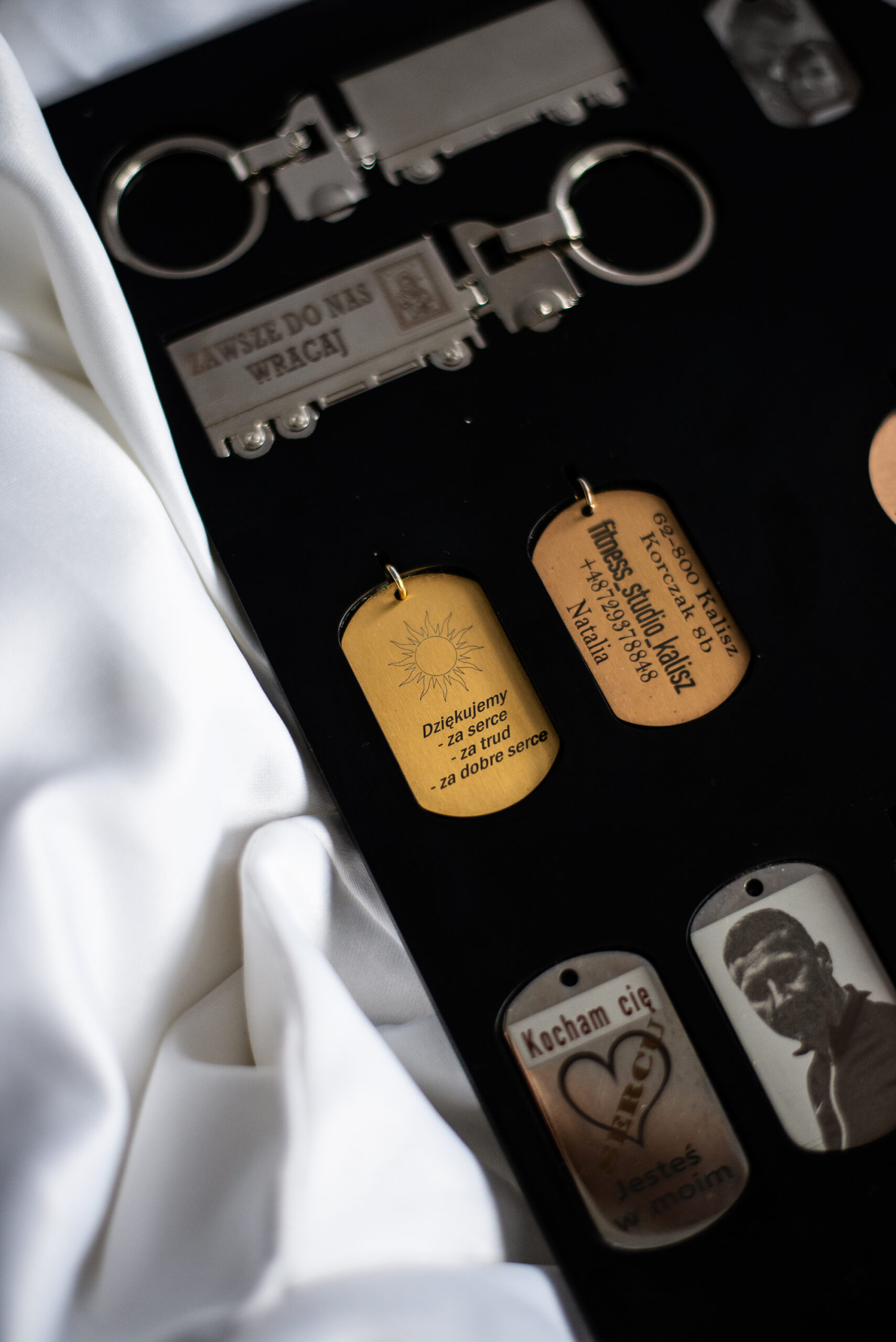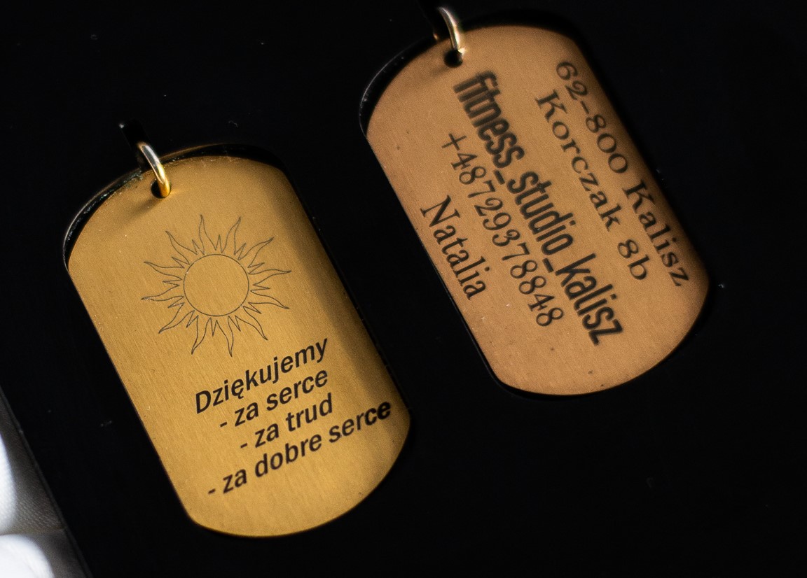 Nieśmiertelnik-brelok koloru złotego stal szlachetna z grawerowaniem laserowym! Personalizacja!