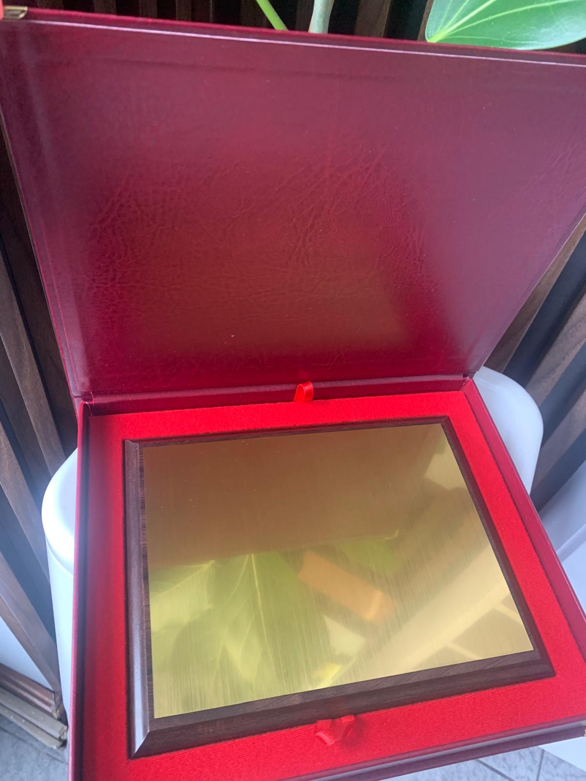 Podziękowanie/dyplom/certyfikat na podkładzie drewnianym w reprezentacyjnym opakowaniu! Personalizacja! CZERWONY/ZŁOTY
