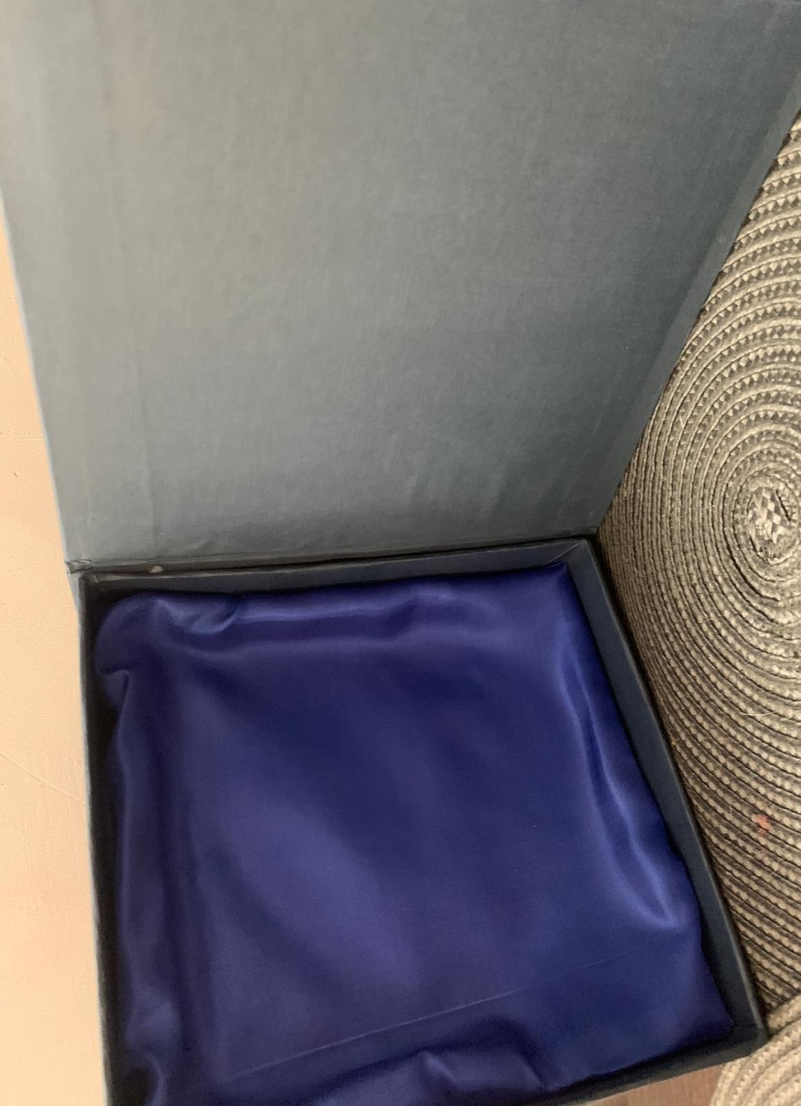 Pudełko prezentowe granatowe z klapką na magnes 20x19x6 cm.