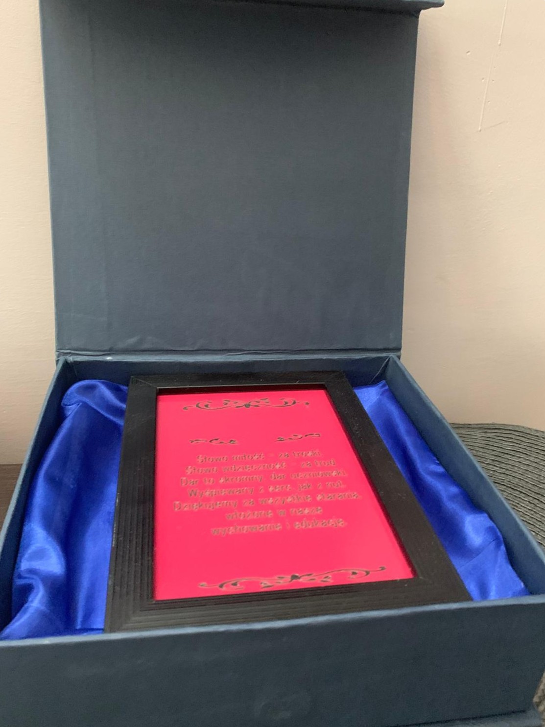 Podziękowanie/dyplom/certyfikat na podkładzie drewnianym w reprezentacyjnym opakowaniu! Personalizacja! CZERWONY/ZŁOTY