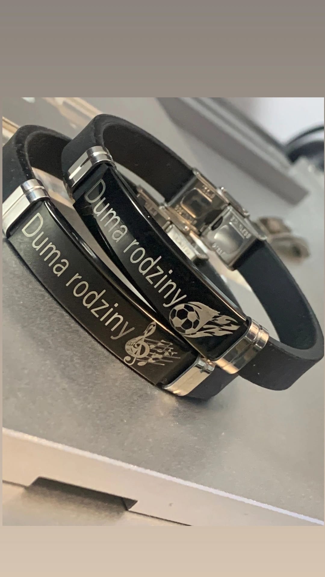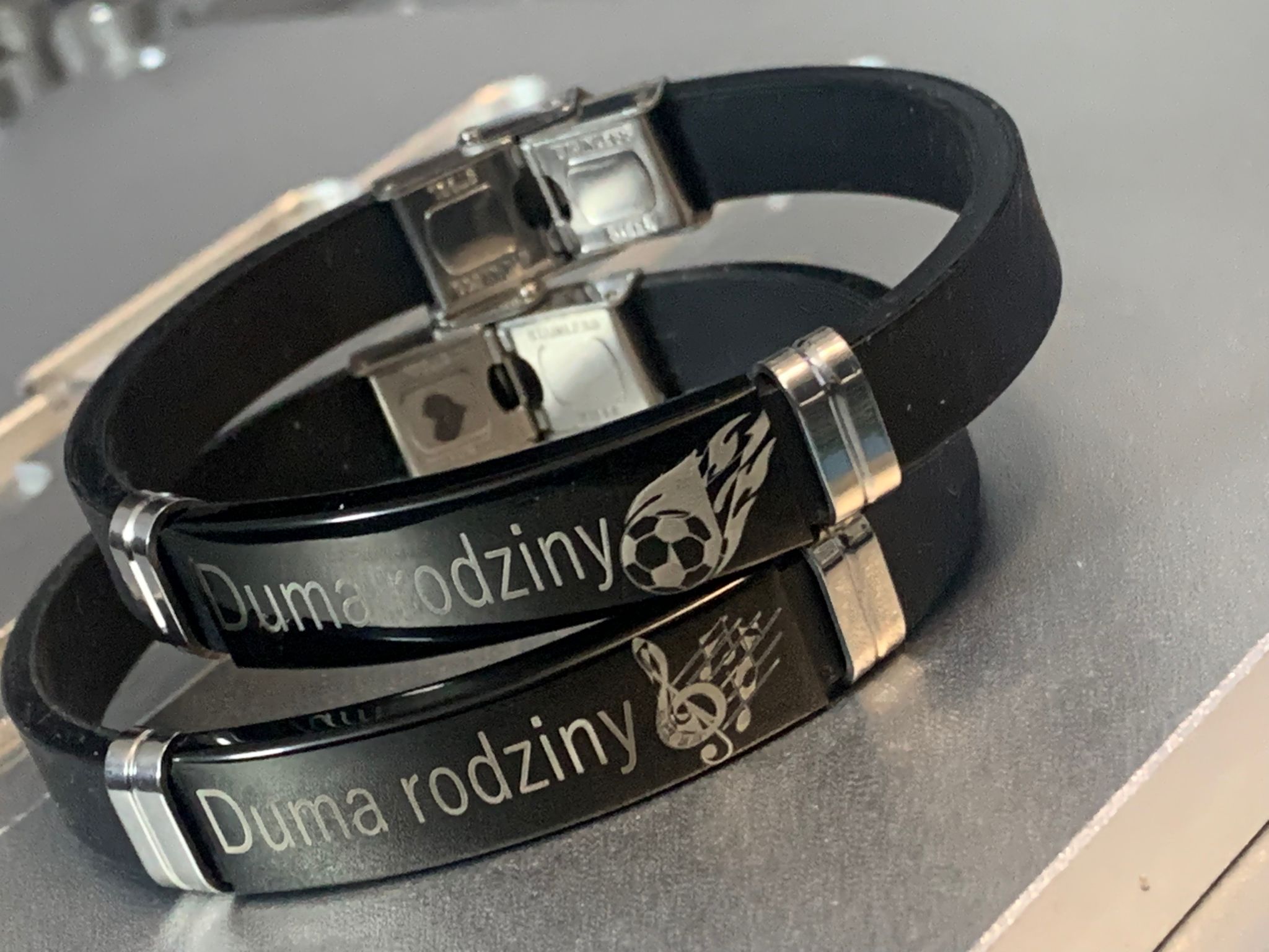• Stalowa bransoletka z opaską z kauczuku! Personalizacja! Laserowe grawerowanie!
