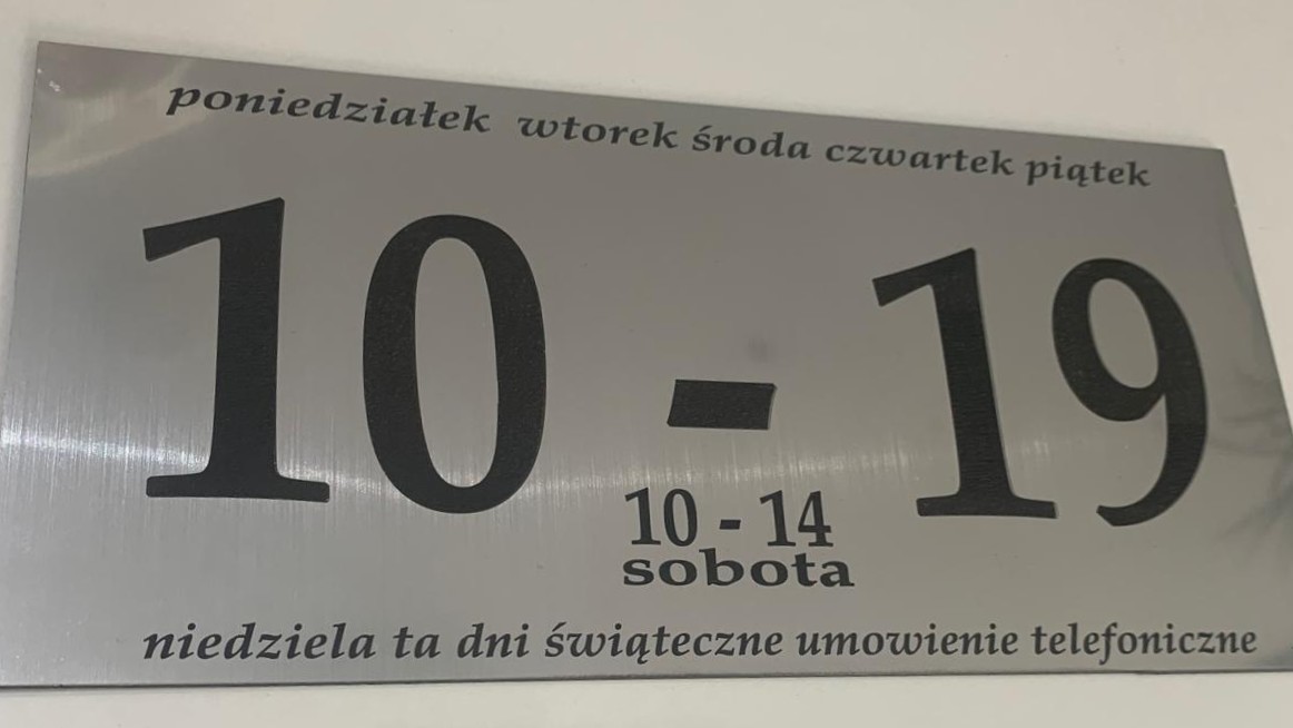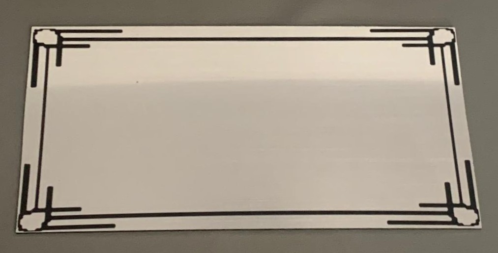 Tabliczka wykonana jest z laminatu w kolorze srebro szczotkowane.