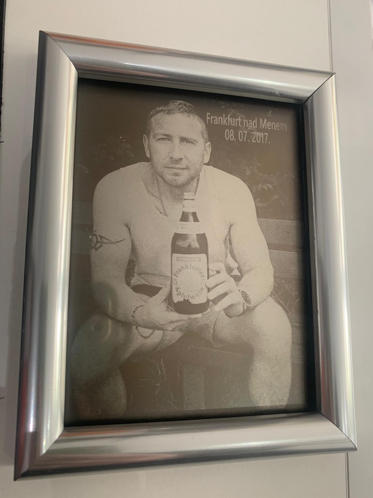 Dwóstronne zdjęcie na metalu, grawerowane laserem